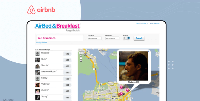 The early version of Airbnb (Source: Net Solution)